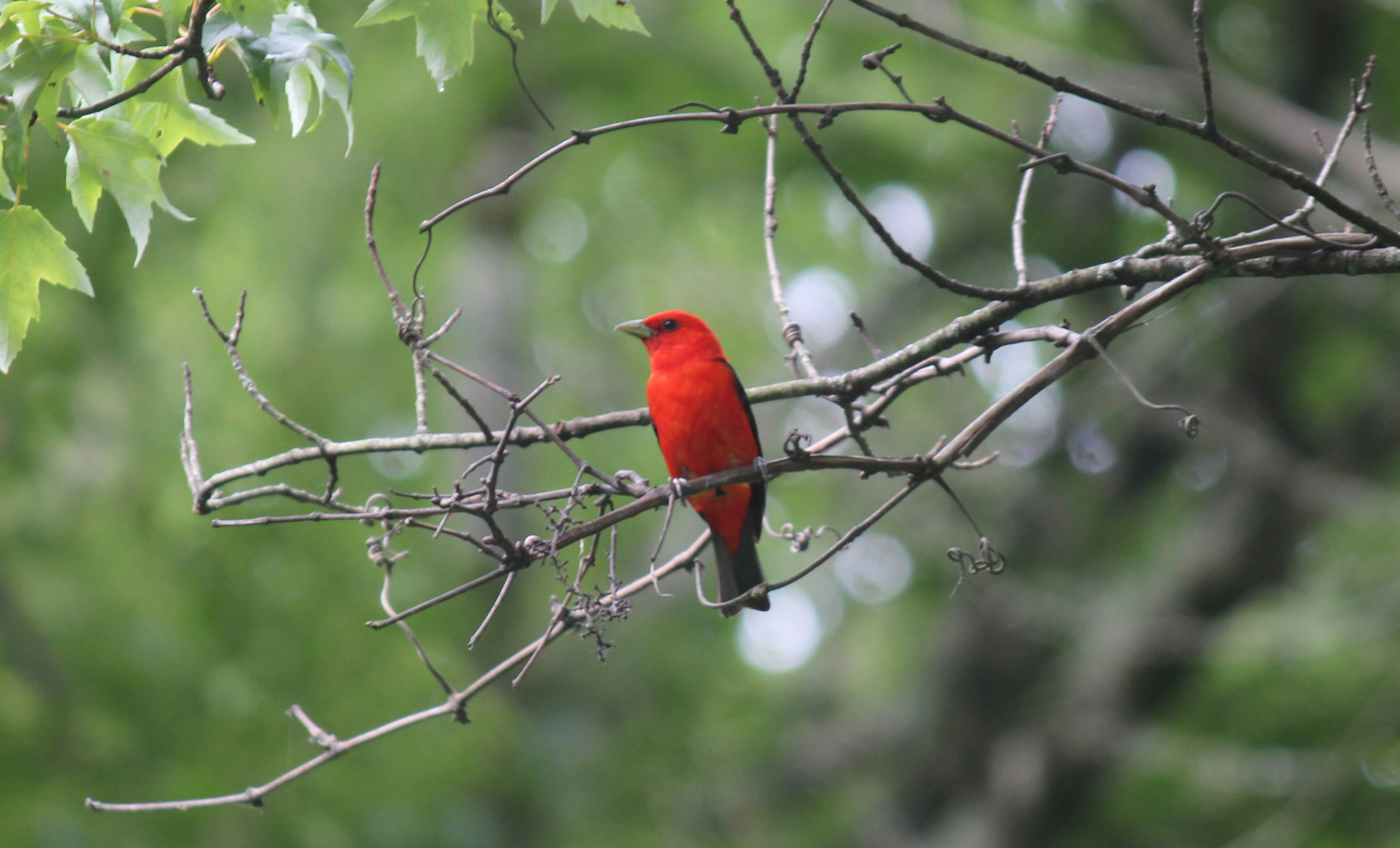 Coming here, I worried that I would lose that connection, the reassurance of knowing the company in among the trees. So armed with the Merlin app on my phone, I have been recording their songs and getting to know my newly acquainted feathery chums. It has been a wonderful revelation so far. I am entranced by the astonishing varieties and their wonderful names, some almost familiar like the American Robin, Goldfinch, Red-Winged Blackbird, Water Thrush, Tufted Titmouse and Waxwings, then others I have never heard before: Grackles and Cardinals and the exotic sounding Scarlett Tanager (pictured), Eastern Towhee and Baltimore Oriole. But they are not all high-falutin here, there are any number of different species of sparrow. My favourite is the White-throated Sparrow with his smart yellow eyebrows, who gives a nonchalant whistle like a street urchin up to no good.